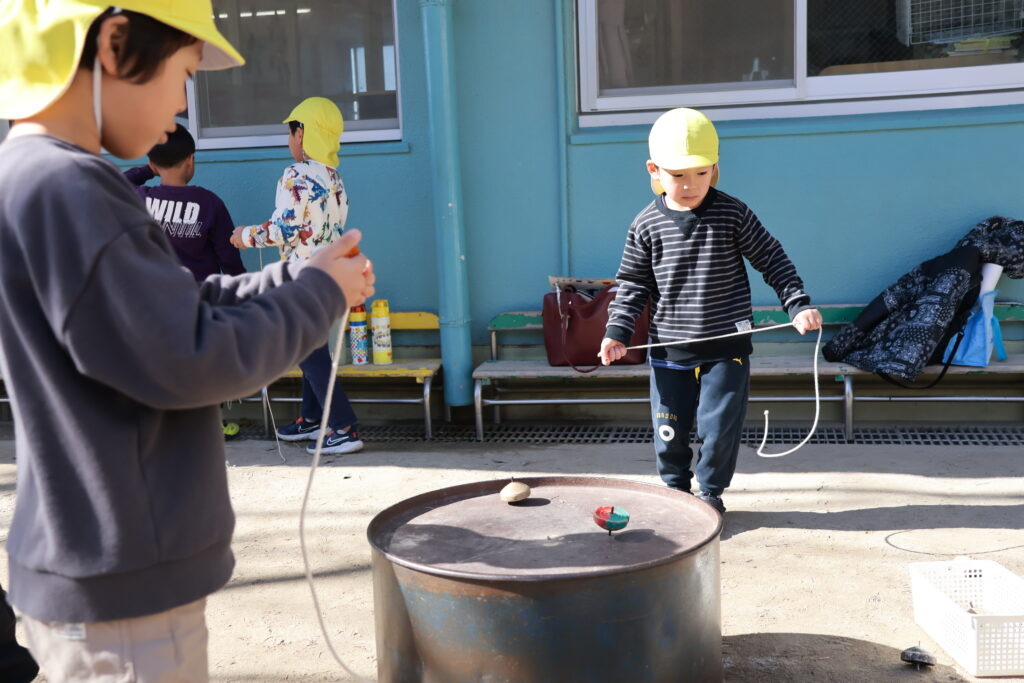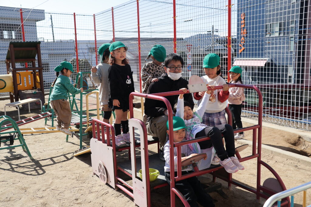 園庭で遊んで