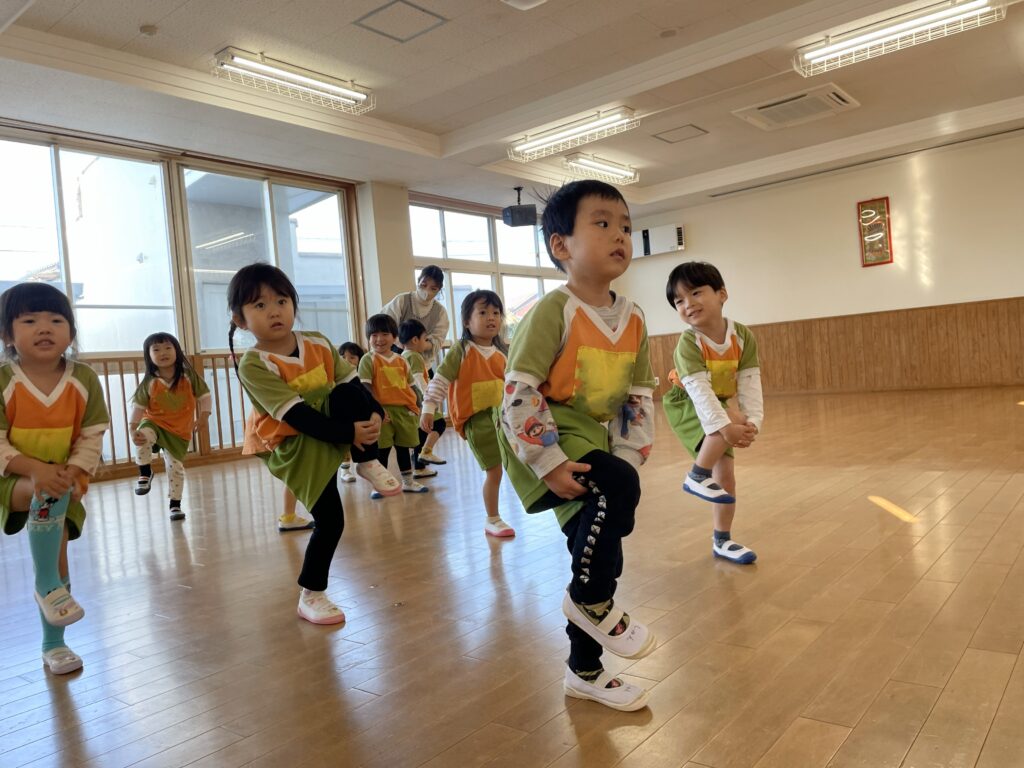 ダンスでは、「あわてんぼうのサンタクロース」の曲に合わせて、リズムにのりながら楽しく踊りました。音楽が流れると自然と笑顔になり、サンタさんになった気分で元気いっぱい体を動かす子どもたちでした。クリスマスが待ち遠しくなる、楽しい時間となりました。