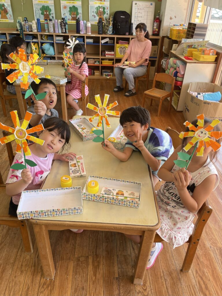 今日は、実習生のお姉さんが年長さんに「ひまわりの制作」を教えてくれました。