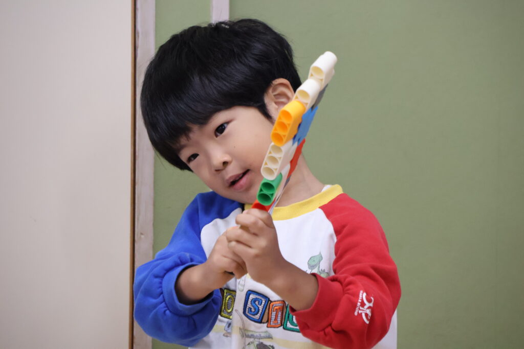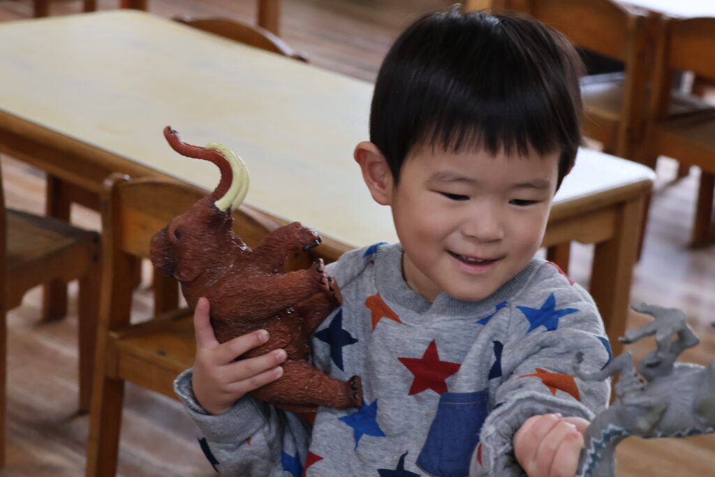 お絵描きをしたり、恐竜のおもちゃで冒険ごっこをしたり、ブロックで色んな形を作ってみたり…