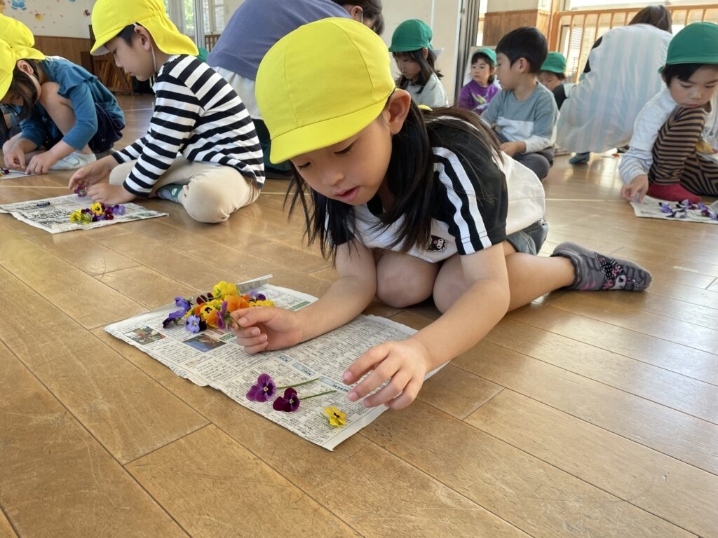 花びらをそっと並べながら「いいにお~い!」「きれいだね!」と嬉しそうな声があちこちから聞こえてきました。