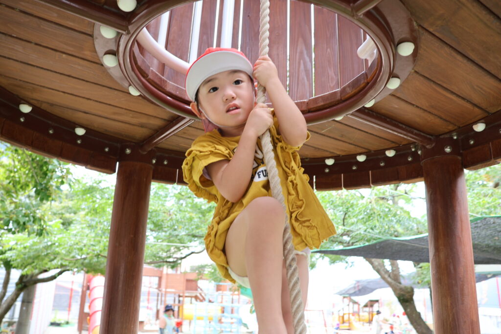 子どもたち自身の力で登れるよう、見守りながらそっと援助しています。