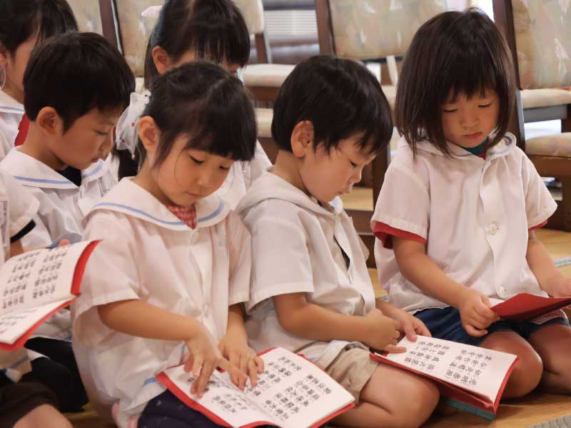 感謝や思いやりの心、命の大切さを伝える時間です。静かに手を合わせる経験を大切にしています。
