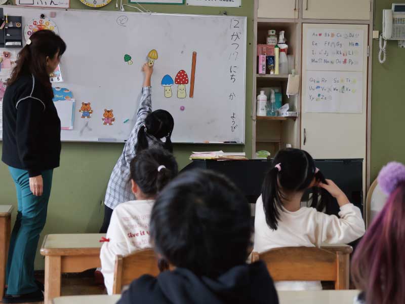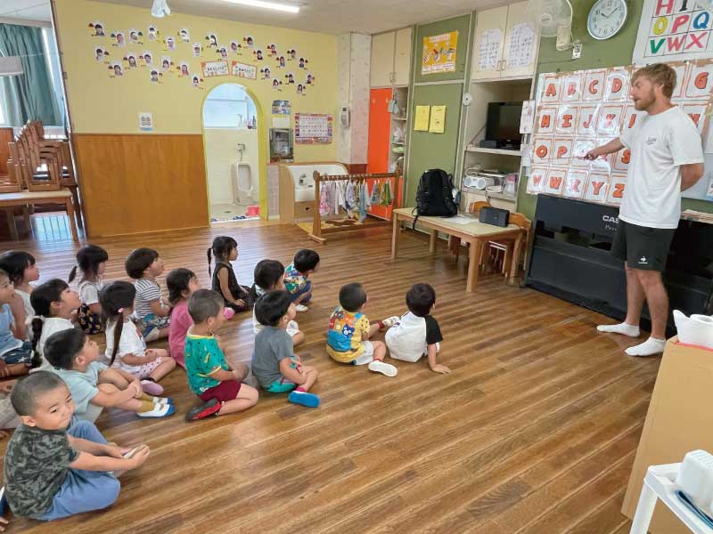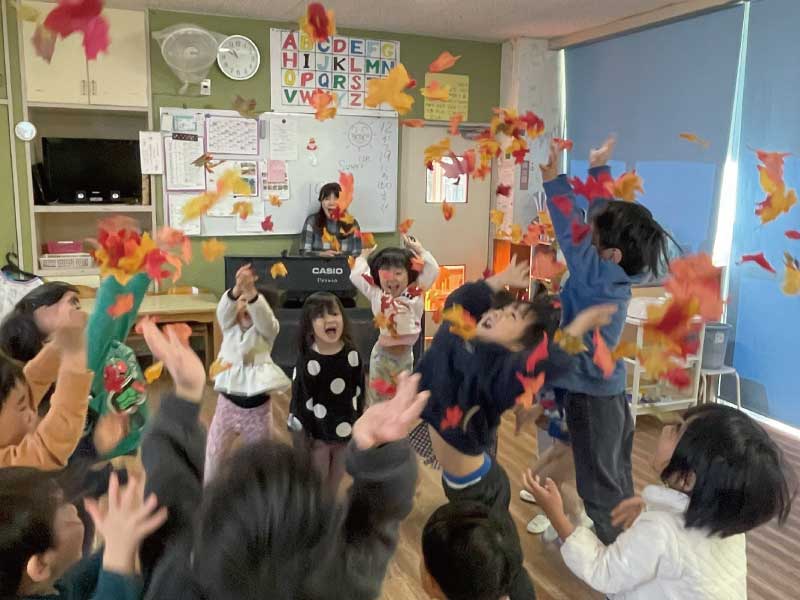 歌やゲーム、挨拶などを通して、英語の音や言葉に楽しく触れます。