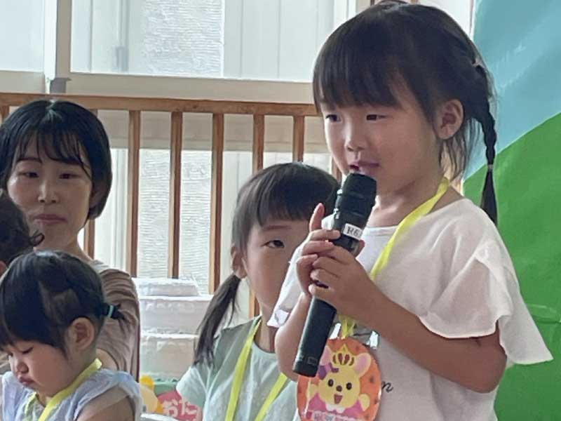 毎月のお誕生日のお友だちを、みんなでお祝いします。みんなの前に立って主役になる経験を大切にしています。
