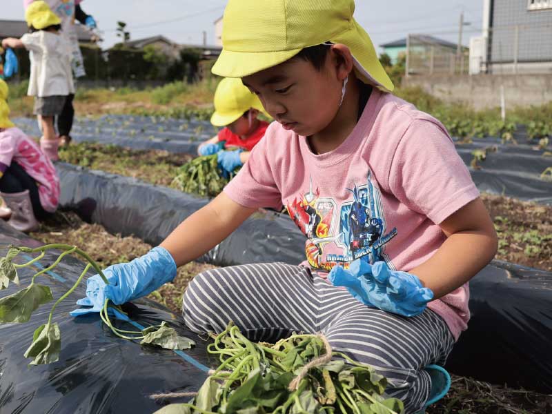 野菜の苗植えや収穫を通して、自然への興味や食への感謝の気持ちを育てます。